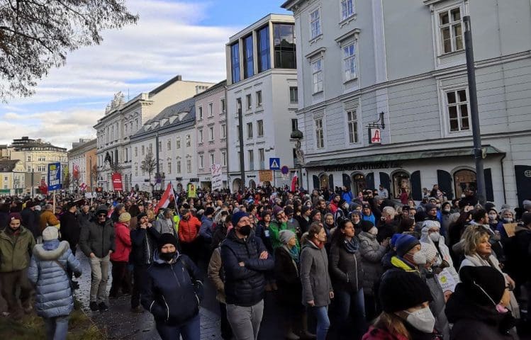 „Frieden, Freiheit, keine Diktatur!“, halte es am heutigen Samstag durch viele Orte in Österreich. Bei Protestkundgebungen und Märschen fanden sich tausende Österreicher zusammen um gegen die angekündigte generelle Impfpflicht zu demonstrieren. Auch Rufe nach einem Streik wurden immer wieder laut, um die Regierung zu zwingen, ihre Pläne fallen zu lassen. Ein erster Warnstreik findet bereits am Mittwoch, dem 1. Dezember in ganz Österreich statt.Werbung